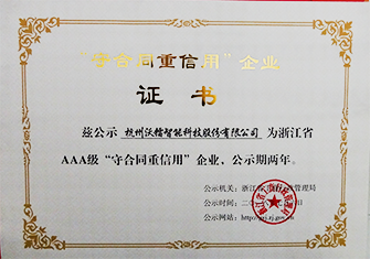 - 浙江省AAA級重合同守信用單位